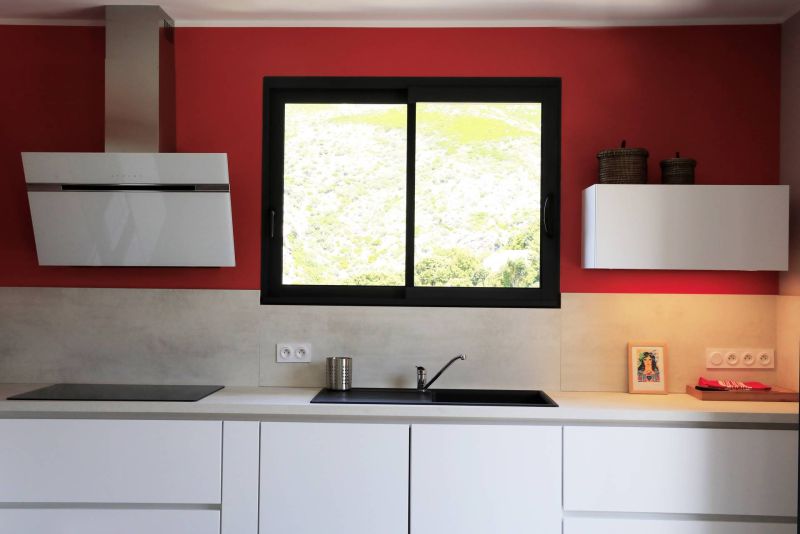 Maison contemporaine de 120 m² à Poggio d'Oletta, joli village pittoresque situé à 10 minutes de Saint Florent, son port et ses plages, avec un grand parking privé.
